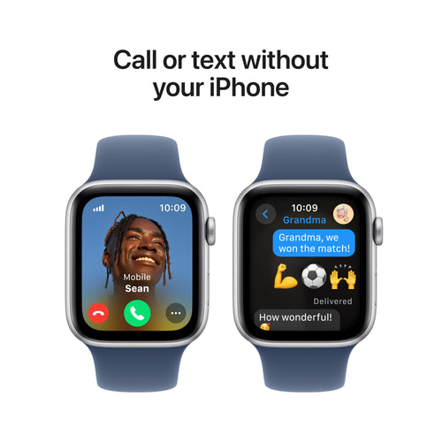 Apple Watch SE GPS + Cellular 44mm Silver Aluminium Case with Denim Sport Band - S/M