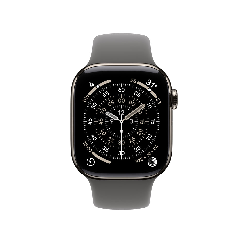 Apple Watch Series 11 GPS + Cellular 42mm Natural Titanium Case with Stone Grey Sport Band - M/L