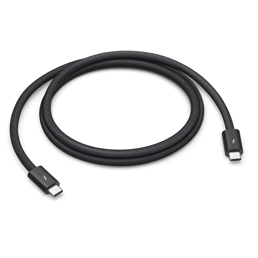 Featuring a black braided design that coils without tangling, this 1-metre cable supports Thunderbolt 3, Thunderbolt 4 and USB 4 data transfer up to 40Gb/s, USB 3 data transfer up to 10Gb/s, DisplayPort video output (HBR3) and charging up to 100W. Use this cable to connect a Mac with Thunderbolt 3 or 4 (USB-C) ports to Thunderbolt (USB-C) and USB displays and devices such as Studio Display, Pro Display XDR, docks and hard drives. You can also use this cable to connect iPhone 15 Pro to Mac.